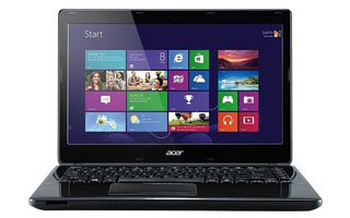 The Aspire E1-470P certainly looks the part of a budget laptop: The notebook sports an unremarkable glossy black plastic exterior that easily picks up fingerprint smudges, with a silver Acer logo on the right side of the lid serving as the sole flourish.